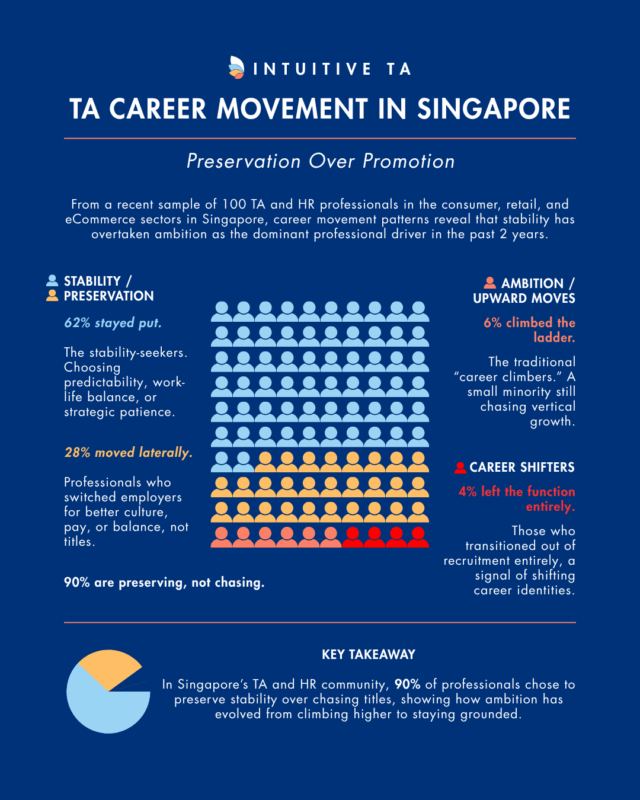 From a recent sample of 100 TA and HR professionals in the consumer, retail, and eCommerce sectors, career movement patterns reveal that stability has overtaken ambition as the dominant professional driver.